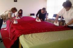 Bereits am vergangenen Donnerstag fand in der Finower Kirche der NAK eine ungewöhnliche Bügelaktion statt, musste doch der große Vorhang hinter dem Altar von unschönen Falten befreit werden (Bild 2).