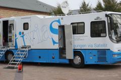 Vor der Halle steht auch der Übertragungswagen des Bischoff-Verlages, der den Gottesdienst in die Gemeinden der Gebietskirche Berlin-Brandenburg übertragen wird (Bild 6). Hier wartet noch viel Arbeit, die Übertragungstechnik zu installieren.