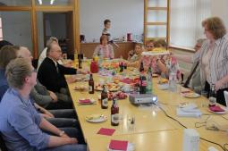 Nachdem sich die Zuhörer mit Speise und Getränken versorgt hatten, erläuterte Gemeindevorsteher Matthias Steinberg zunächst den Begriff „Katechismus“ und dessen Geschichte bis hin zur Veröffentlichung des Katechismus der Neuapostolischen Kirche im Jahr 2012.