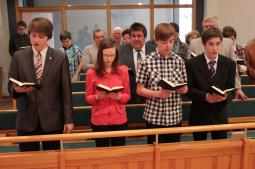 Am Sonntag, dem 28. April 2013 ist es auch in Finow so weit: der Gottesdienst mit Konfirmation wird gefeiert. Und dann gleich mit vier Konfirmanden! Vor dem Fest wartete aber noch die „Abschlussprüfung“. Am Dienstagabend (23.04.) waren die Konfirmanden mit Eltern, Verwandten, Lehrern sowie Gemeindemitgliedern zu dem sogenannten „Konfirmandengespräch“ zusammengekommen.