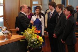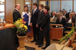 Eine gewisse Aufregung war schon zu verspüren, als die Konfirmandin Lydia Strnad und die Konfirmanden Julian Hinz, Maximilian Ratzel und Maurice Rook vor dem Gottesdienst die Sakristei betraten, um dann von dort aus durch Gemeindevorsteher Matthias Steinberg unter dem feierlichen Gesang der über 100 Anwesenden an ihren Platz in der vordersten Reihe der Kirche geführt zu werden.