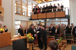 Nach einem Lied des gemischten Chores wurden dann Priester Ulrich und Gemeindevorsteher, Hirte Mattias Steinberg zu Predigtzugaben an den Altar gerufen.