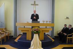 Anschließend verlas er das vom Bezirksapostel für diesen Gottesdienst vorgesehene Bibelwort aus Richter 18, aus 6: „Zieht hin mit Frieden; euer Weg, den ihr geht, ist dem HERRN vor Augen.“