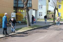 Außen wurden die Blumenbeete gesäubert und die Hecken geschnitten. Ein besonderes Augenmerk lag auf der Beseitigung der vielen Pfützen in der unbefestigten Erich-Weinert-Str.