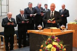 Nach dem Bußlied und der Freisprache von den Sünden empfing unser Mitbruder Hartmut D. aus der Gemeinde Finow durch den Bezirksapostel das Sakrament der Heiligen Versiegelung.