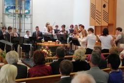 Der Gottesdienst wurde festlich umrahmt durch einen großen Chor der Sängerinnen und Sänger beider Gemeinden. Er endete mit Segenswünschen, die instrumental durch das ebenfalls aus beiden Gemeinden gebildete Orchester vorgetragen wurden.