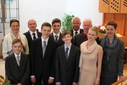 Auch in Finow wurde in diesem Jahr zusammen mit der Gemeinde Finowfurt Konfirmation gefeiert. Die Konfirmanden beider Gemeinden hatten ein Jahr gemeinsam Konfirmandenunterricht und da lag es nahe, auch den Festgottesdienst am 11. Mai 2014, der zudem durch den Leiter der Gebietskirche Berlin-Brandenburg, Bezirksapostel Wolfgang Nadolny gehalten wurde, gemeinsam zu erleben.