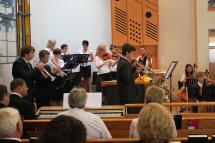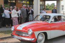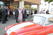 Zum Abschluss spielte nochmals das Gemeindeorchester, bevor eine lange Gratulationstour begann. Nach abschließenden Gruppenfotos wartete vor der Kirche noch eine Überraschung, ein alter Wartburg, der das Jubelpaar dann zu den weiteren Familienfeierlichkeiten brachte.