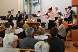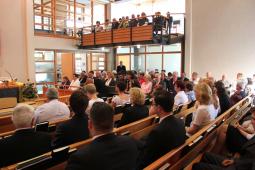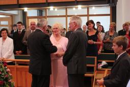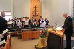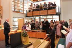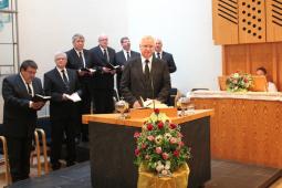 Nach dem Lied des Gemeindechores begrüßte der Bezirksapostel die 153 Anwesenden in der fast vollbesetzten Kirche und brachte seiner Freude Ausdruck, dass so viele gekommen sind, auch um dem goldenem Paar zu gratulieren und an seiner Freude Anteil zu nehmen. Dies sei auch ein Zeichen dafür, dass viel Liebe ausgestreut wurde.