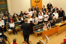 Zum Abschluss dankte Bezirksältester Härm – auch im Namen aller Zuhörer – allen Akteuren für ihre Mühe und ihren Einsatz, bevor das Konzert nach einer guten Stunde mit dem Titellied „Lobsingt dem Heiland Jesus Christ“ (CM 35) sein stimmungsvolles Ende fand.