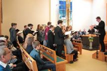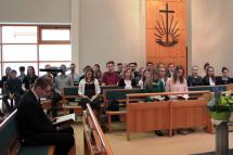 „Singt ein Lied von Gott“ (CB 344) forderte der Jugendchor die 94 Anwesenden, darunter 43 Jugendliche zu Beginn des Gottesdienstes auf und bekundete im Refrain dieses Liedes „Gott ist da. Er ist unbegreiflich nah!“